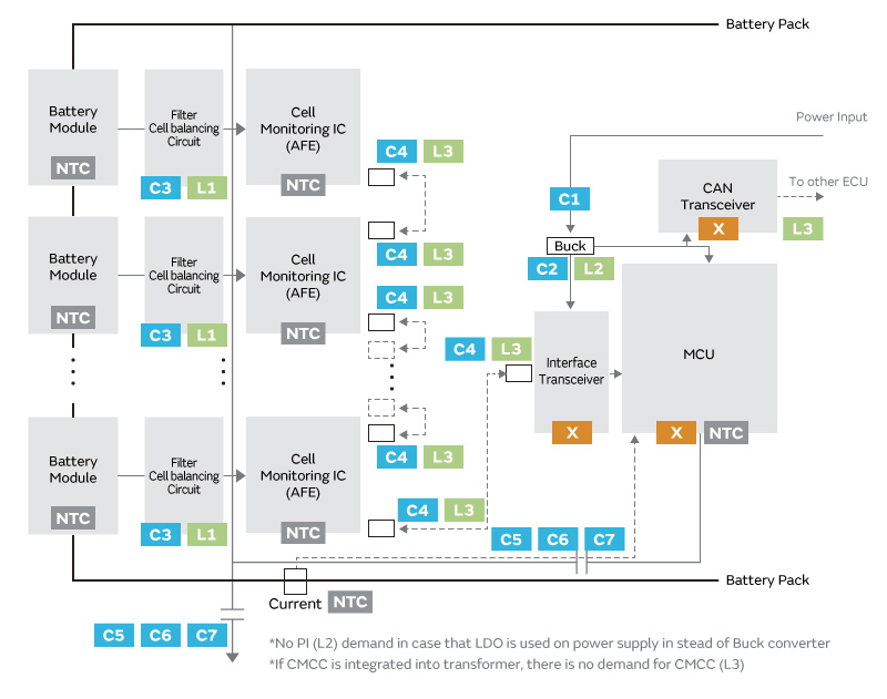 バッテリマネジメントシステムでは、小型、高精度、安全機能の充実による高付加化が求められます。それを支える製品ラインアップをご紹介します。
