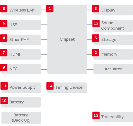 インターネットやクラウドサービスの普及にともない、手軽に持ち運べて簡単につながるタブレット端末(Tablet Terminators)が近年急速に普及しています。最近では2台目のPCとしてだけではなく、法人や教育用途への展開に期待されています。 ムラタは電子部品の小型・薄型化技術、高密度実装技術、センシング技術などでタブレット端末の高性能化、高機能化に対応し、機器の安全性を確保する熱対策部品をはじめ、低消費電力のコネクティビティを提供する無線通信モジュール、快適な操作性を実現するセンサなど、新時代のコンピューティングに貢献します。