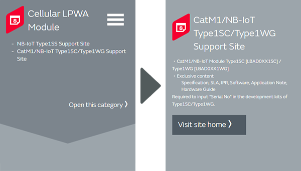 On the Cat. M1/NB-IoT support site, you have access to exclusive content such as the design guides and datasheets on the Cat. M1/NB-IoT module Type 1SC [LBAD0XX1SC]/Type 1WG [LBAD0XX1WG].