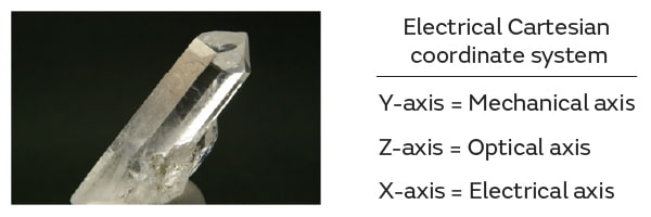 Quartz is a leading piezoelectric. When pressure is applied, electricity is generated. It is a non-ferroelectric polar piezoelectric crystal. Therefore, it does not need polarization processing (aligning the polarity of the charge) like piezoelectric ceramics.