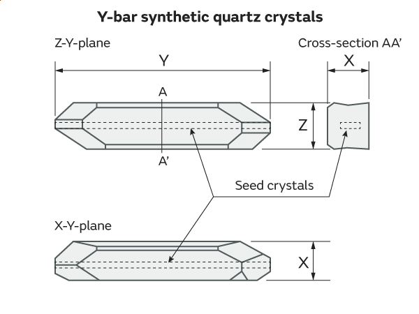 Natural quartz crystals have irregular shapes and so are difficult to handle. Synthetic quartz crystals are industrially grown, so they have a certain shape to make them easier to handle.