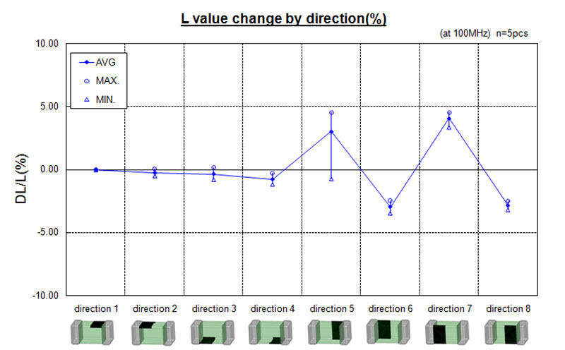 Figure 1 shows examples of the rate of change in inductance value for different mounting directions.