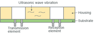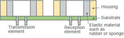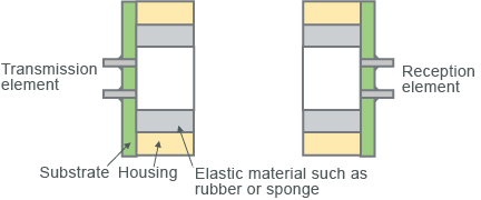 Ensure that the vibration of the sensor is not conveyed to the board or housing. If such vibrations are conveyed to the board or housing, the housing may continue to vibrate after reverberations from the sensor have ended, extending the reverberation time.