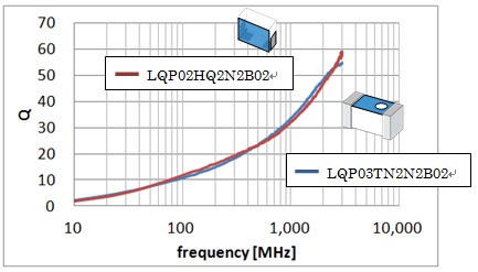 Comparison between a product in the new series (LQP02HQ2N2B02) with a previously available product (LQP03TN2N2B02)