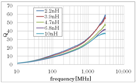 *1: Q = This is the reciprocal of the dielectric dissipation factor (DF). The higher the Q value, the lower the loss and also the more efficient the inductor.