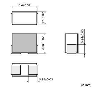 - Ultra-compact 01005 size (0.4 x 0.2 x 0.3 mm)