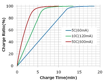 • High-rate charge characteristics and long cycle-life characteristics enable repeated use after rapid charging whenever use of the device is required.