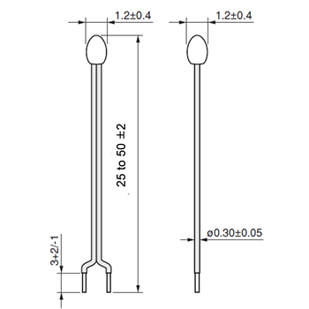 Commercialization of a new type of NTC thermistor with flexible leads and faster thermal response