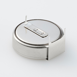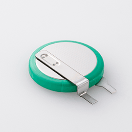 Carefully selected active materials are used for the active material as well as for the electrolyte. These materials are sealed by Murata's innovative technology to minimize battery self-discharge. The annual self-discharge rate at room temperature and normal humidity is less than 1% of the nominal capacity.