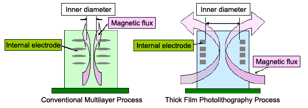 Achieved High Q with larger inner diameters, and easier passage of magnetic flux, by high multilayer precision!