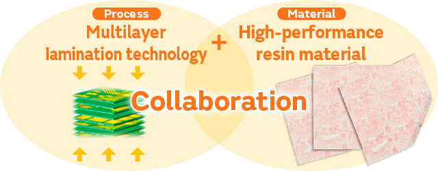 Fusing all of these characteristics achieves a high-density, thin multilayer substrate that helps increase the degree of freedom that customers have in designing the interior of products and that saves space.