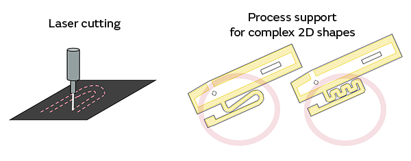 Multi-layer LCP product is cut out using laser cutting, which makes it possible to bend it in three dimensions and hold that shape to achieve complex 2D and 3D shape designs.