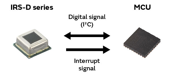 The IRS-D Series is one of the world's smallest reflowable SMD and digital output (I²C) type pyroelectric infrared sensors. Boasting a high signal-to-noise ratio and a strong noise resistance, this product makes it easy to add a human detection function to IoT devices and other equipment.