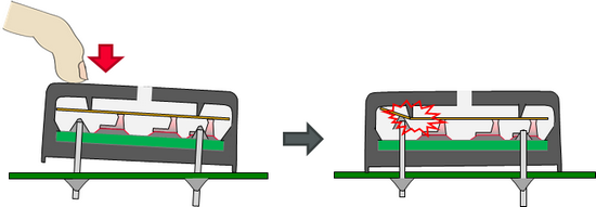 In order to prevent a defect due to the pins being pushed in, be careful not to apply a force exceeding the value shown below, for each product. Note that if the temperature of the product is high, there is a possibility of a defect occurring even under a force that is weaker than the following value.