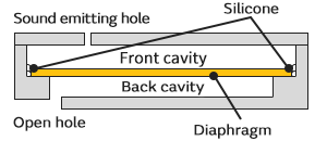 The inside of the surface-mounted device (SMD) piezoelectric sounder is divided into