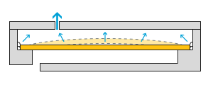 air chambers by a piezoelectric diaphragm and silicone adhesive. These air chambers are connected to the