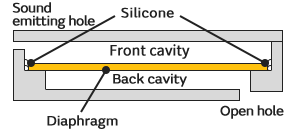 The inside of the surface-mounted device (SMD) piezoelectric sounder is divided into