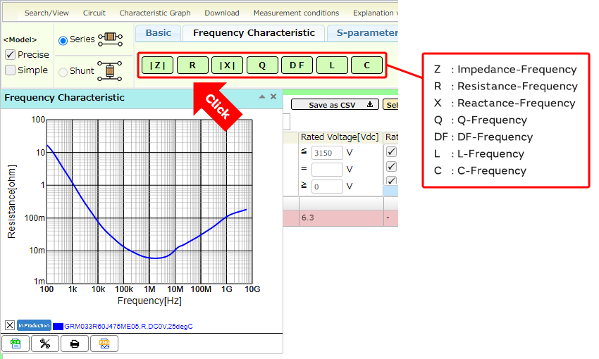 Not only ESR and ESL values, but also the impedance frequency characteristics and other characteristic data can be confirmed.
