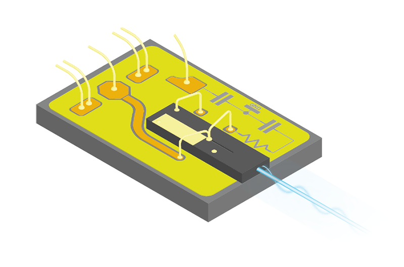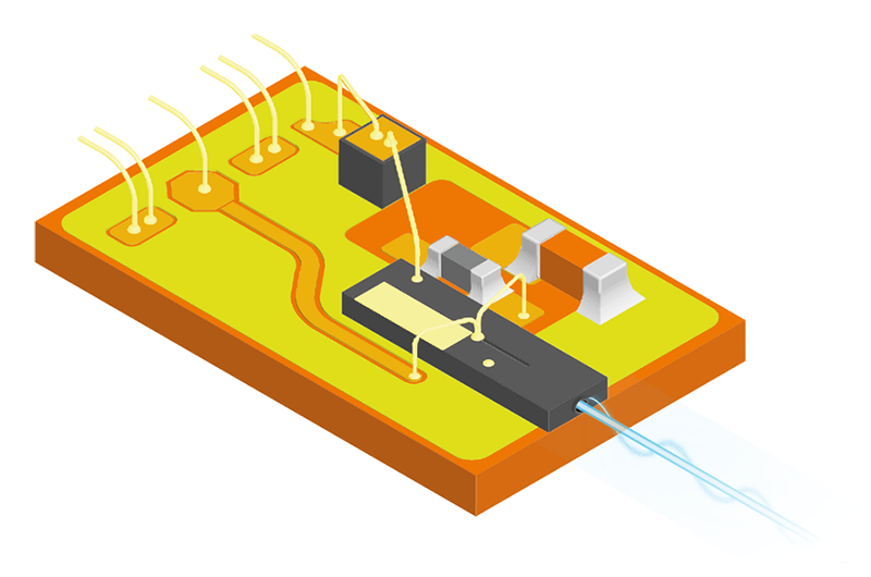 The use of Murata's silicon integrated passive device (IPD) technology enables both miniaturization and performance improvements for optical communication devices. For example, silicon interposers for TOSA enable the integration of all capacitors and resistors, which are conventionally mounted separately. This further improves stability in response to changes in temperature and voltage. As a result, it is possible to reduce the amount of mounting work, achieve miniaturization, and improve performance.