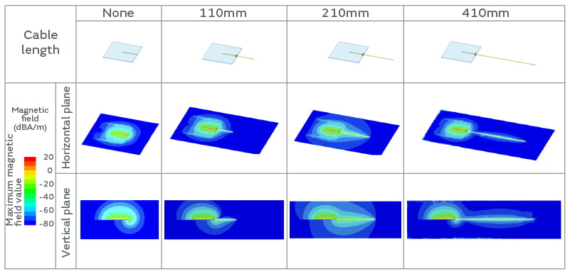 Figure 3-3. Results of magnetic field simulation with different cable lengths (330MHz)