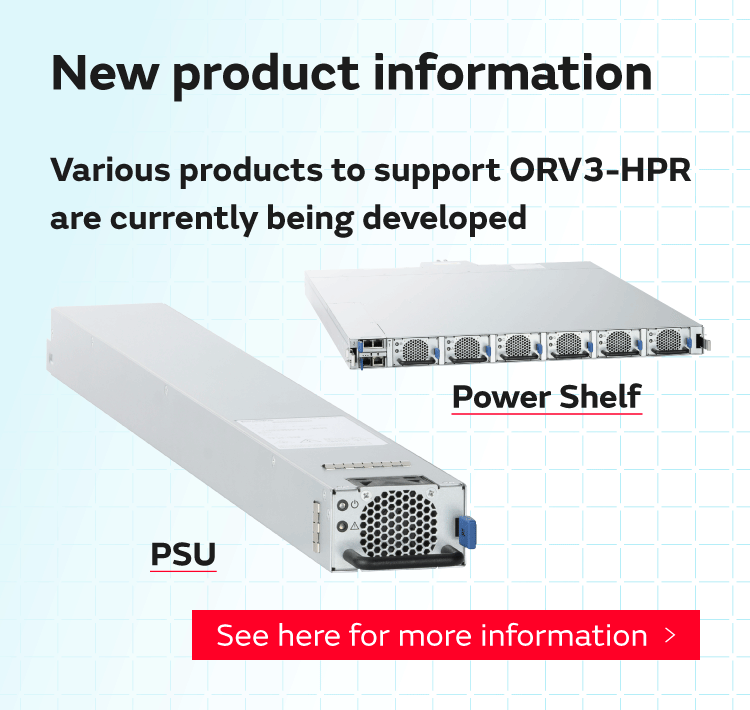 - Compatibility with a wide range of specifications: We offer a range of PSUs and power shelves compliant with ORV2, ORV3 and ORV3-HPR standards to stably provide power for heavy-load devices