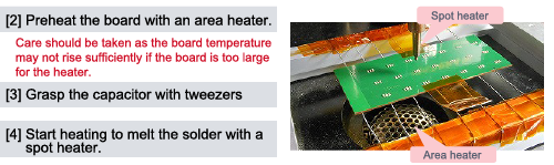* When only mounting capacitors such as when creating product prototypes, perform only the mounting task. In these cases, the solder-adding task consists of coating with solder.