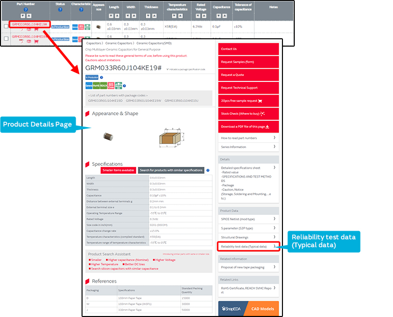 for ceramic capacitors (MLCC and lead type) can be found by clicking “Typical data” on the Product Details Page.