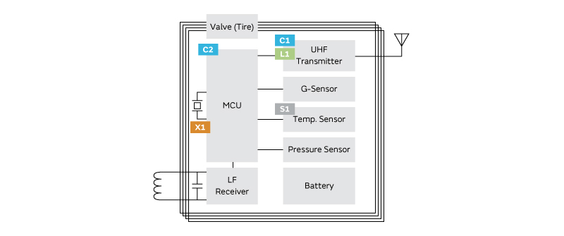自動車のタイヤ内の空気圧を管理することでドライバーを危険から守るTPMS(Tire Pressure Monitoring System)向けの、製品ラインアップをご紹介します。