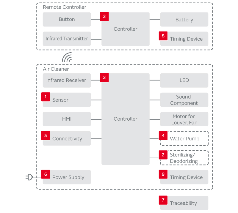 空調機器や冷蔵庫・洗濯機など、日々の暮らしで使う家電製品には、より一層の省エネルギーと環境・健康への配慮が求められています。ムラタは、低損失で長寿命なセラミックコンデンサや変換効率の高い電源モジュールで省エネルギー化に貢献。スマート家電へは、空気浄化を行うイオナイザモジュールや殺菌・消臭・野菜などの鮮度保存&栄養UPを行うオゾナイザモジュールに加え、各種センサ、無線通信モジュール、マイコン周辺部品などで、人と地球に優しい家電を支えます。
