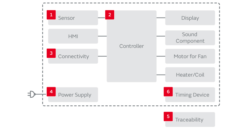 空調機器や冷蔵庫・洗濯機など、日々の暮らしで使う家電製品には、より一層の省エネルギーと環境・健康への配慮が求められています。ムラタは、低損失で長寿命なセラミックコンデンサや変換効率の高い電源モジュールで省エネルギー化に貢献。スマート家電では、空気浄化を行うイオナイザモジュールや殺菌・消臭・野菜などの鮮度保存&栄養UPを行うオゾナイザモジュールに加え、各種センサ、無線通信モジュール、マイコン周辺部品などで、人と地球に優しい家電を支えます。