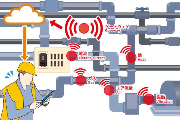バッテリ駆動の多種多様な無線センサにより、レイアウトフリーで設備の見える化と省エネ、予知保全を実現できる監視システムです。