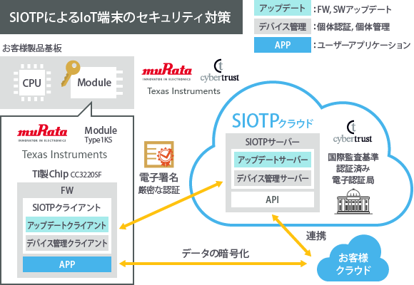 株式会社村田製作所(本社:京都府長岡京市、代表取締役会長兼社長:村田 恒夫 以下、村田製作所)は、サイバートラスト株式会社(本社:東京都港区、代表取締役社長:眞柄 泰利 以下、サイバートラスト)が提供するセキュアIoTプラットフォーム(以下、SIOTP*1)に対応したMCU*2内蔵Wi-Fiモジュール「Wireless MCU Modules(Type 1KR、Type 1KS)」(以下、本製品)を開発し、2019年10月より量産を開始します。