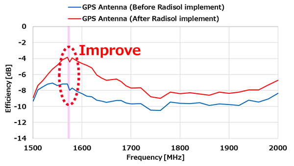 Radisolを実装した結果、GPSアンテナの効率が改善しています(図5)。