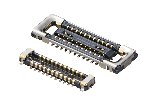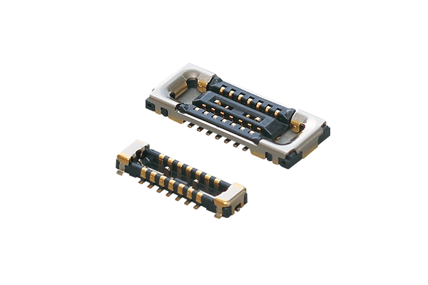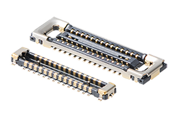 複数の信号を基板から基板へ伝送するためのコネクタです。デジタル信号だけでなくRF信号も通すことができます。 RF信号とデジタル信号を一つのコネクタにまとめることで、携帯機器の小型化に貢献します。