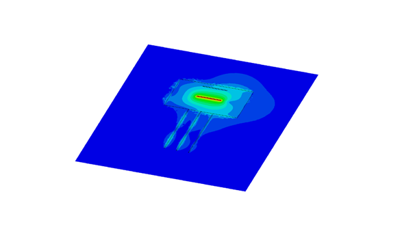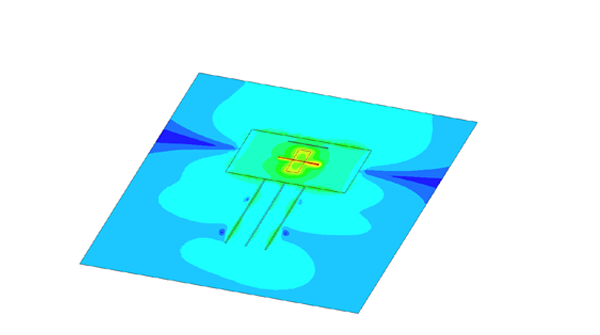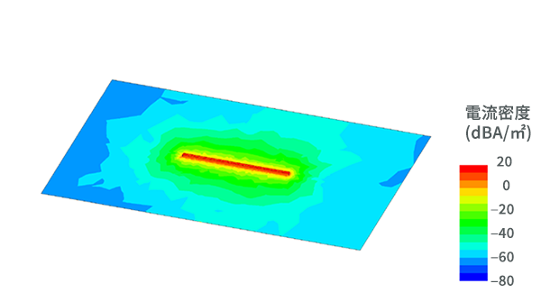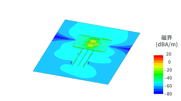 今回は、三次元電磁界シミュレータを用いて、ノイズ電流や磁界の伝搬の様子を可視化しました。