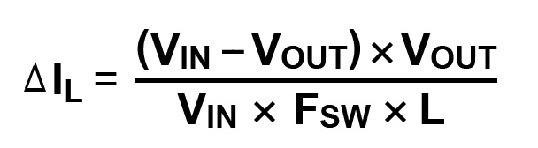 このように、パワーインダクタの働きによりインダクタ電流は連続的に流れることになり、三角波形を示します。インダクタに流れる三角波電流の振幅の大きさは以下の式で表されます。