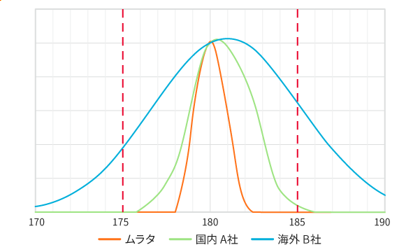 ムラタは水晶振動子用の製造で培った、ウエハの高精度切断と位相差を厚み制御によらない測定で製造していることで、狭位相公差品の量産対応を実現しております。