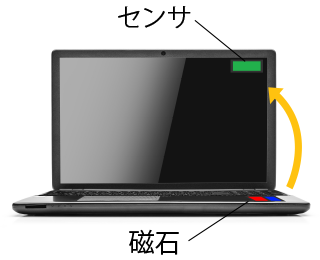 ノートパソコンの開閉検出やセキュリティ機器の動作設定