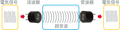 電気信号を超音波に変換、超音波を電気信号に変化する発音原理について説明します。