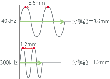 周波数が高いほど、分解能があがります。