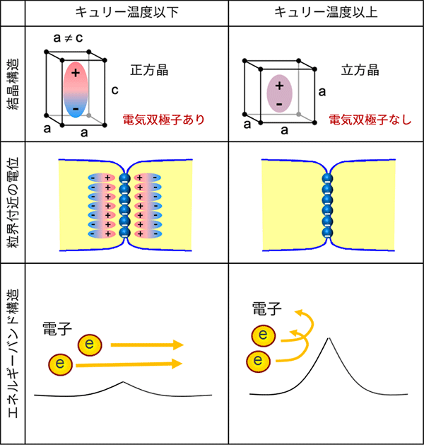 1940年初期、日本、アメリカ、ソ連で独立して発見されたチタン酸バリウム(BaTiO3)は、一般に常温で1010Ω・cm以上ですが、微量の希土類元素(Y、Bi、Sbなど)を添加すると、比抵抗が、10~106Ω・cmになり、かつ、キュリー点に対応して正の温度特性を示すことが、1952年Philips社のHaayman(オランダ)らによって発見されました。
