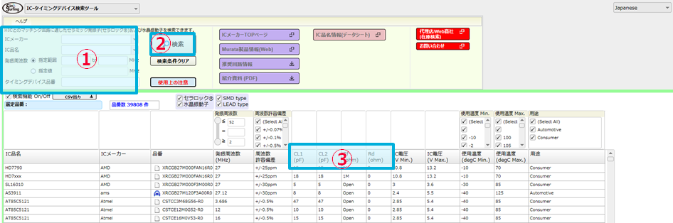 ムラタ製品の特性表示や特性データのダウンロードができます。