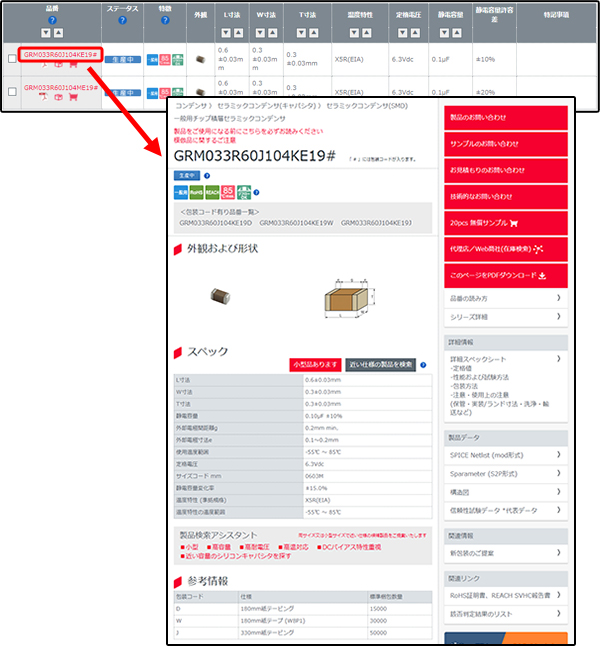 セラミックコンデンサ(MLCCおよびリードタイプ)のめっき層の主原料は、セラミックコンデンサ(キャパシタ) 構造図/材料表にてご確認ください。 また、製品詳細ページ製品詳細ページとはの「製品データ>構造図/材料表」からも、同資料をご参照いただけます。
