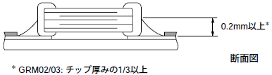 2. 外部電極すず(Sn)めっき品の場合、すずの融点より低い温度ではんだ付けを行うと、外部電極へのはんだ濡れ性が低下し、はんだ付け不良の原因となる場合があります。必ず実装評価を実施して、はんだ付け性をご確認下さい。