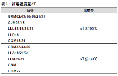 また、予熱の条件は、はんだ温度とコンデンサ表面温度の温度差ΔTが表1の範囲内となるようにして下さい。