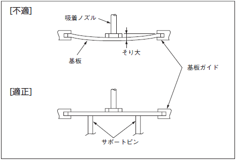 コンデンサを基板に実装する場合は、コンデンサ本体に次のような過度の衝撃荷重が加わらないことを確認する必要があります。