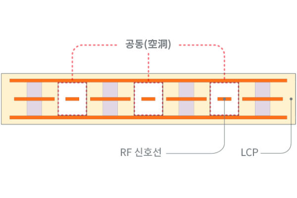 본 제품은 기판 내부에 중공 구조를 도입한 독자 설계를 통해 유전율(Dk) 2.0 미만을 구현하고 전송 손실을 크게 저감했다.