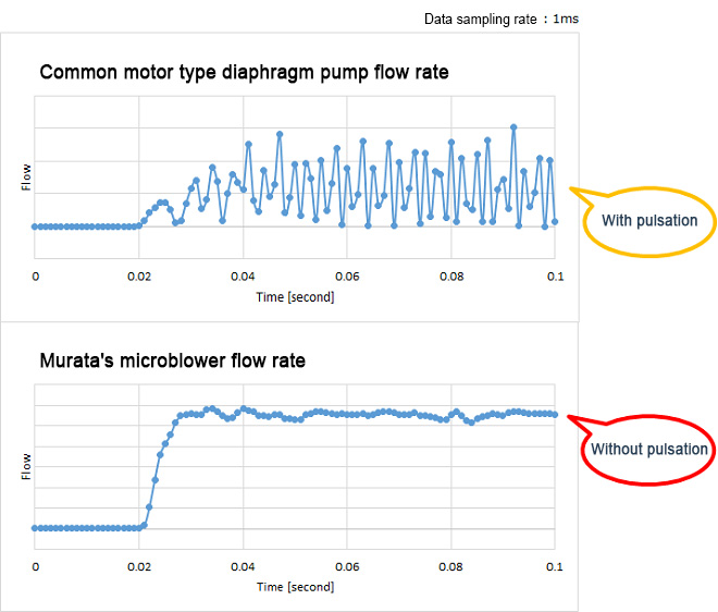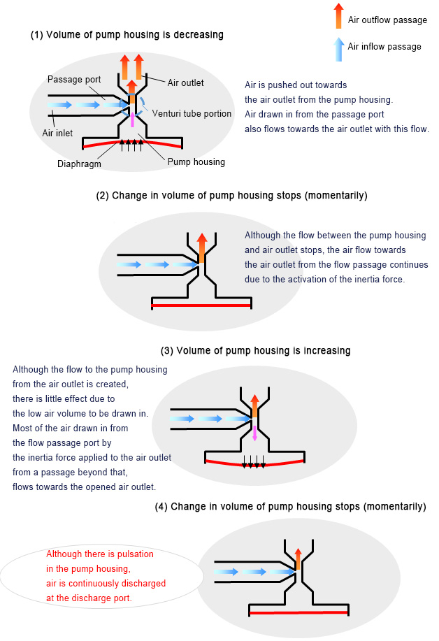 The air flow rate and discharge (suction) pressure is determined by the rotational speed of the motor, and the movement amount of the diaphragm pump.