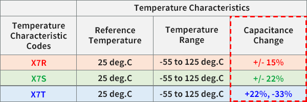 从EIA标准规定的电容变化率来看,在工作温度范围内,电容变化率按 X7R<X7S<X7T 的顺序变大。